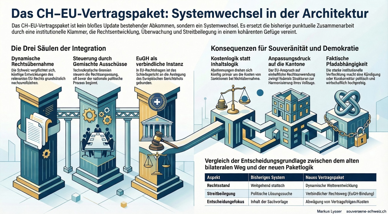 Das Vertragspaket zwischen der Schweiz und der EU ist das komplexeste innenpolitische Dossier seit Jahren. Es betrifft nicht nur einzelne Sektoren – es definiert grundlegend, wie die Schweiz ihr Verhältnis zu ihrem wichtigsten Handelspartner gestaltet.